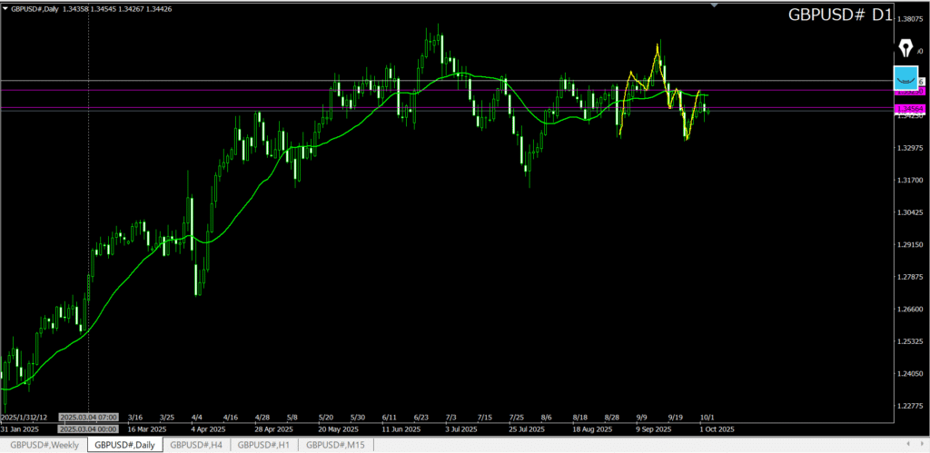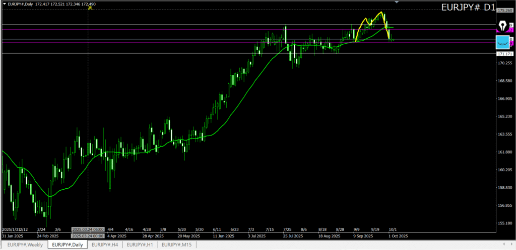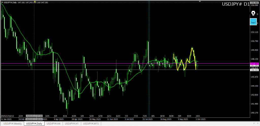 日足 方向下 下降の波の途中 節目を割っているように感じる