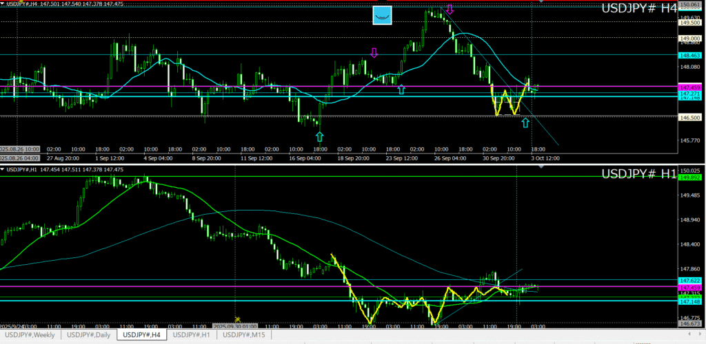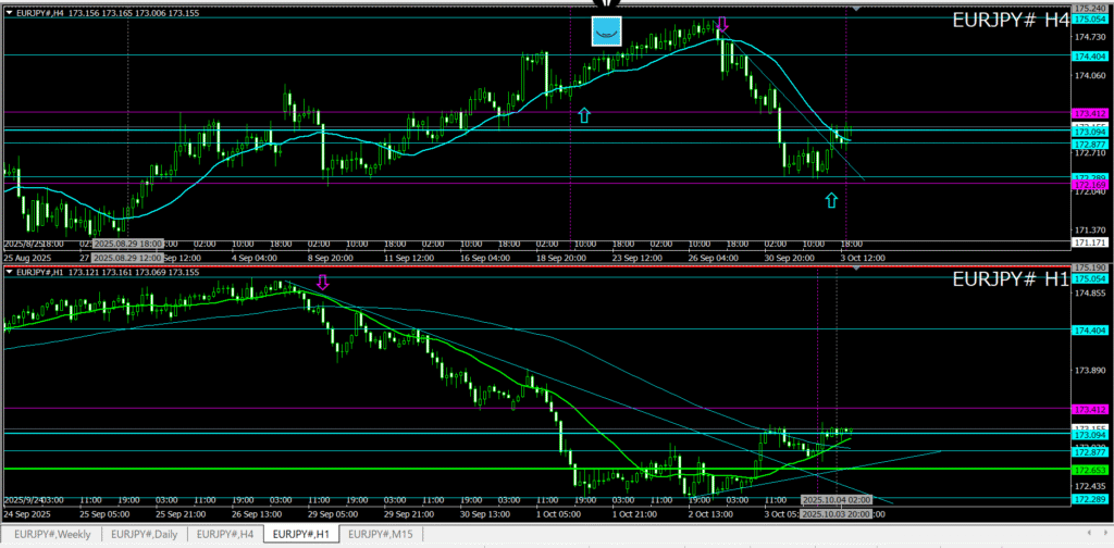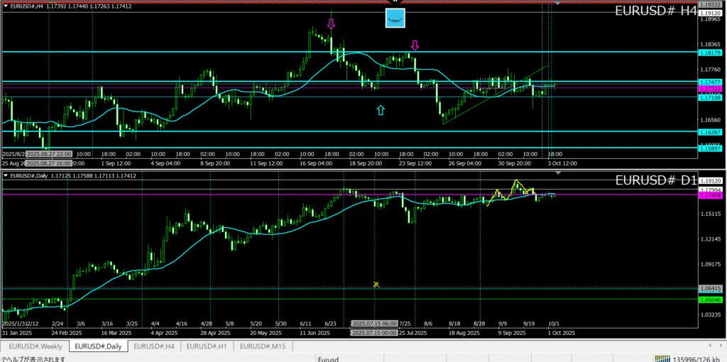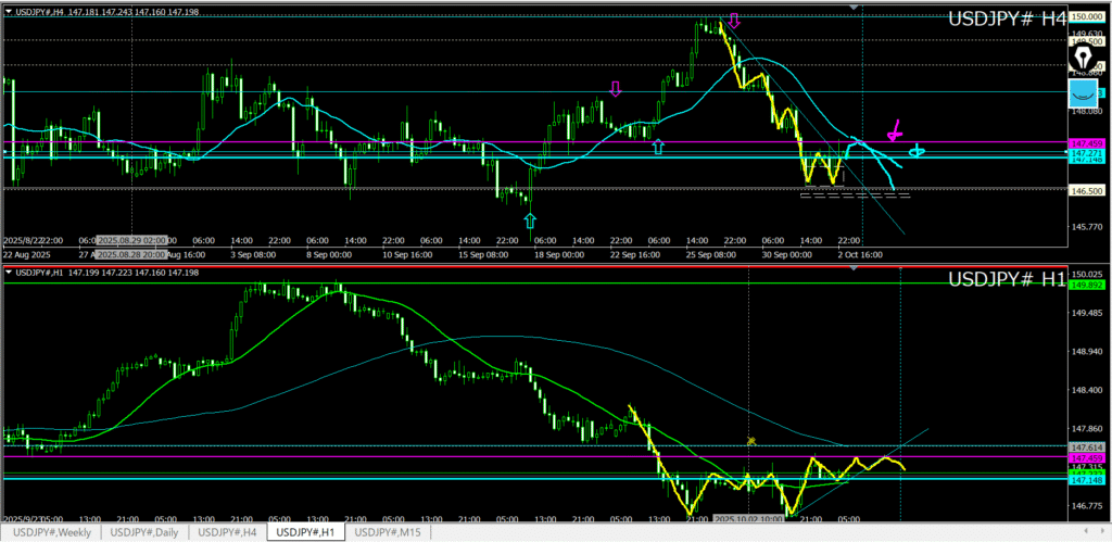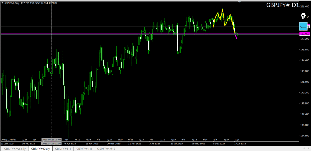 日足下降の途中だが 4hの伸びきりリスクも感じる