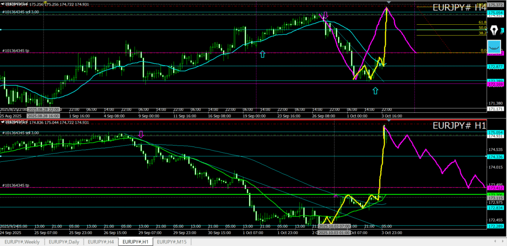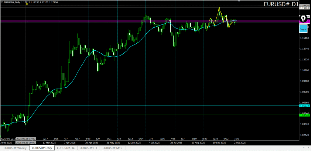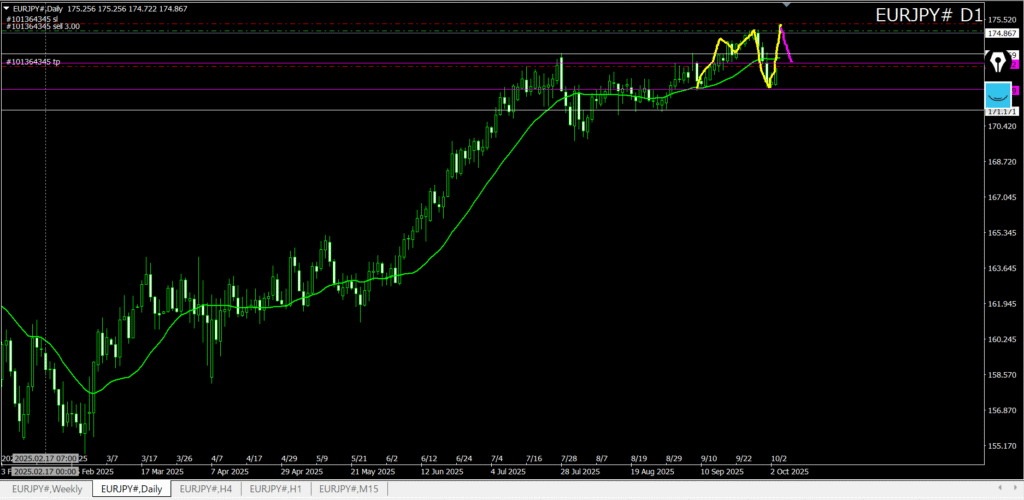 日足 戻り売りエリアにいる MAの下にいる。 やや下向きになって来たかな?
