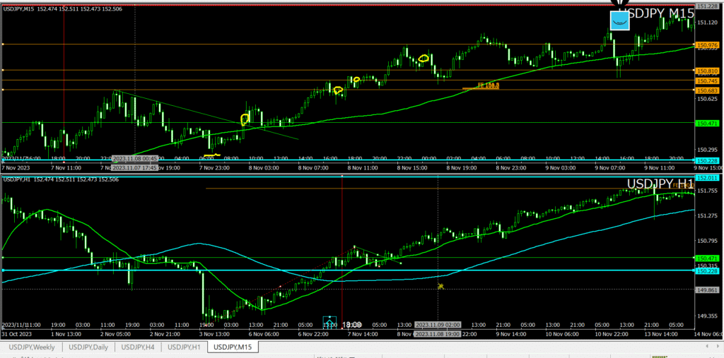 #1hのMAを抜けた機微 #上位足が完全に下方向の波