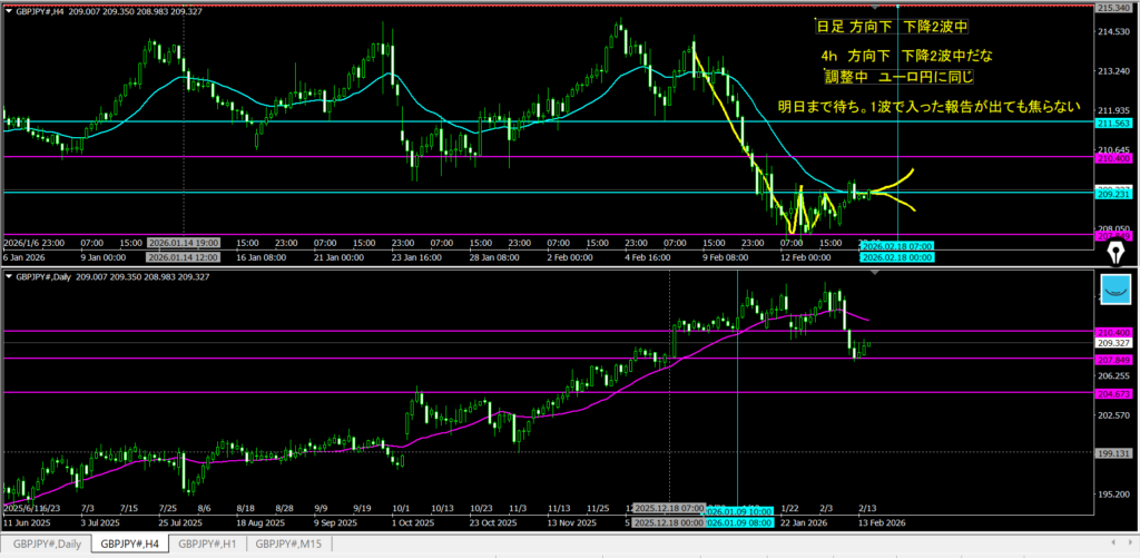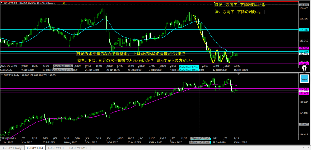2.16振り返り 下目線のまま、4hMAの寄付きを待てている 行動は、OKらーめん