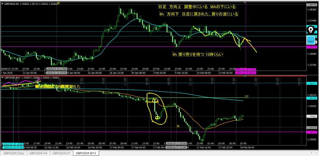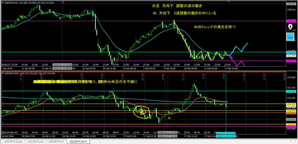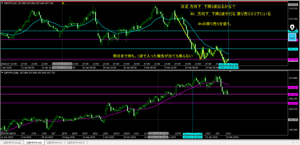 2.17振り返り  ポン円もそうだが、下降の勢いが強すぎて、自分の形が出来てこなかったので、入れなかった=ルールを守れた。OKラーメン