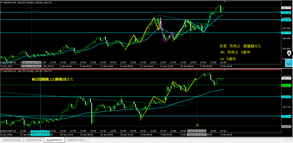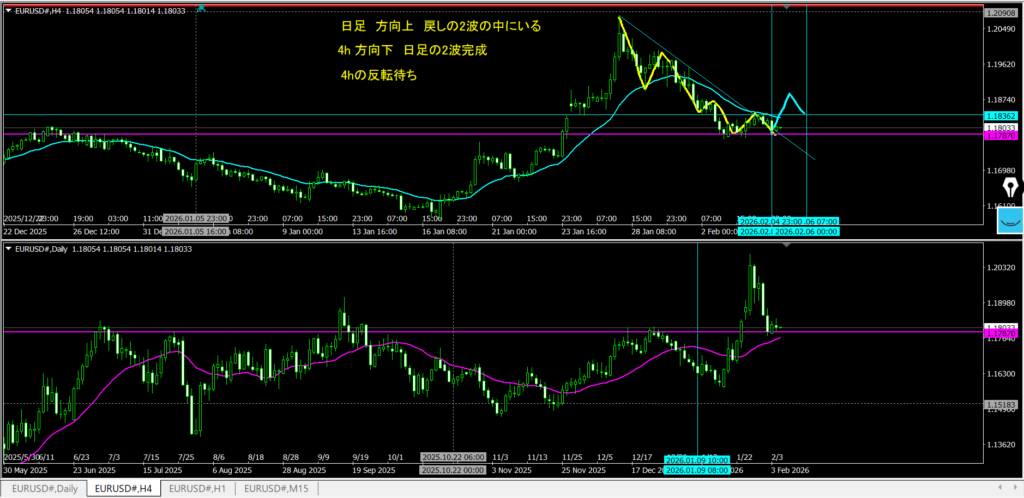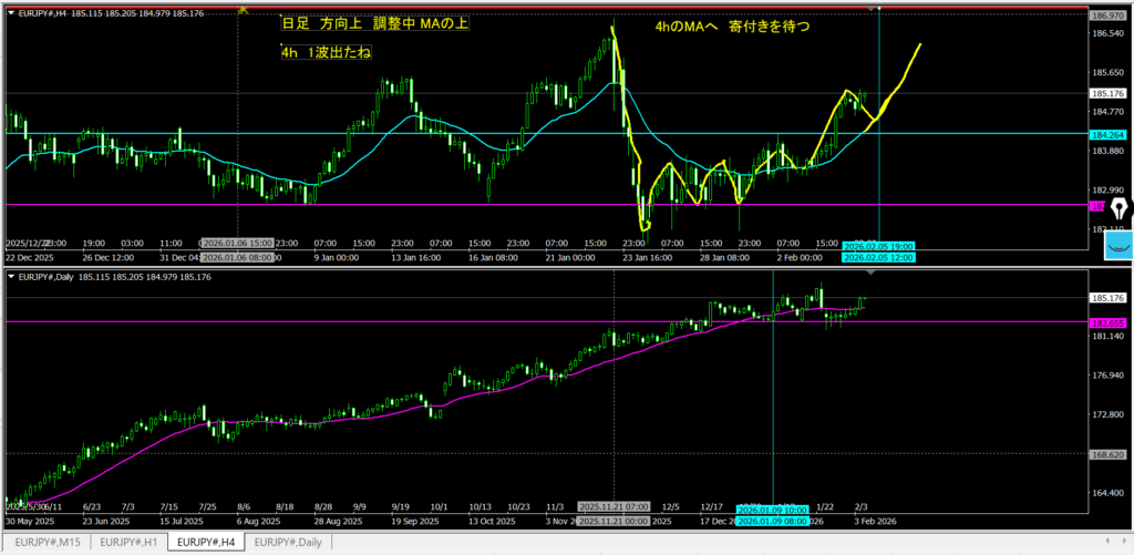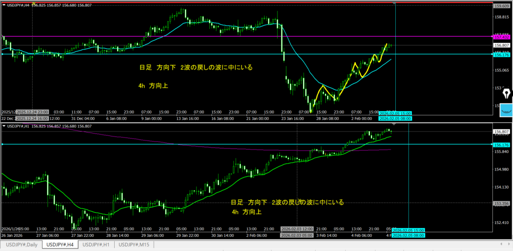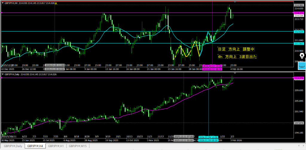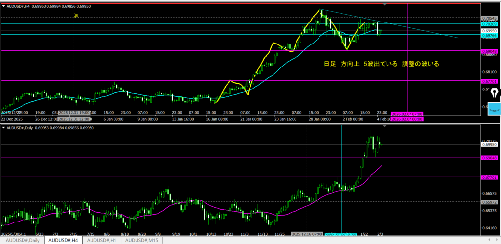 今日は、上下どちらもありうるから、上は1波待ち。 下はリターンムーブ待ち
