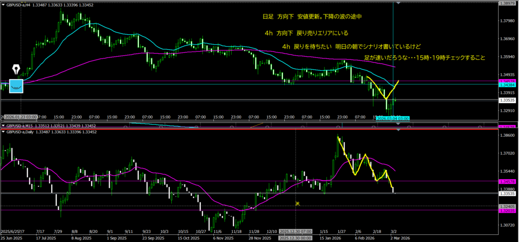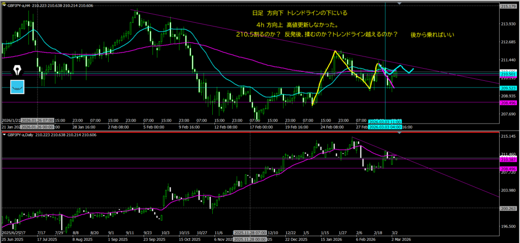 なんか振り返れない、チャートの現状だけを書いていた・・・・ハッキリ行動を書こう。 待ちならそれでいいじゃん。