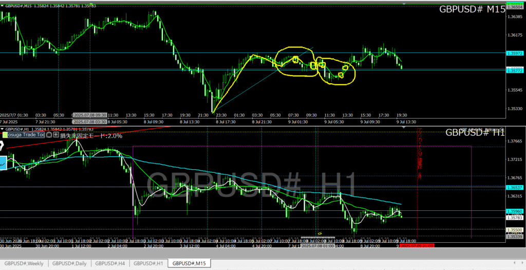 トレード日誌 7.9 +30pips 2025 7/09 トレード日誌 2025-07-09 目次USD/JPY ポン円・ユーロ円を見るに 待った方がよさそうだ EUR/JPY 伸びきりリスク と 高値の更新幅が小さくなっているのが アヤがつく GBP/JPY ポン円も ユーロ円も 抜けてから EUR/USD +7/+5 =12 GBP/USD +2/+3 2回目 +5/+8 =18 トレード日誌 よかったらシェアしてね! URLをコピーしました! トレード日誌 7.8 トレード日誌 7.10 この記事を書いた人 ゆたぽん 関連記事 トレード日誌 10.6 2025-10-06 トレード日誌 10.3 2025-10-03 トレード日誌 10.2 本日親 2025-10-02 トレード日誌 10.1 2025-10-01 トレード日誌 9.30 2025-09-30 トレード日誌 9.29 2025-09-29 トレード日誌 9.26 2025-09-26 トレード日誌 9.25 2025-09-25 コメント コメントする コメントをキャンセルコメント ※ 名前 ※ メール ※ サイト 次回のコメントで使用するためブラウザーに自分の名前、メールアドレス、サイトを保存する。