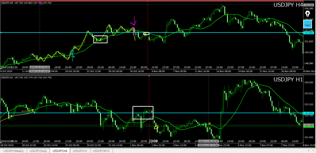 やはり 日足。4hのトレンドライン禁止だな・・・