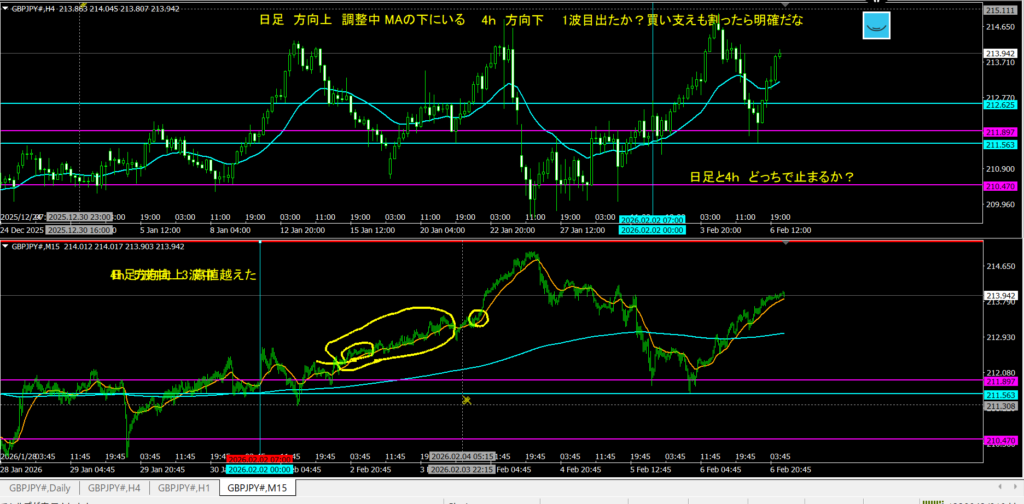 ドル円同様 日足の調整中の中、4hでしっかり勢いが出ている