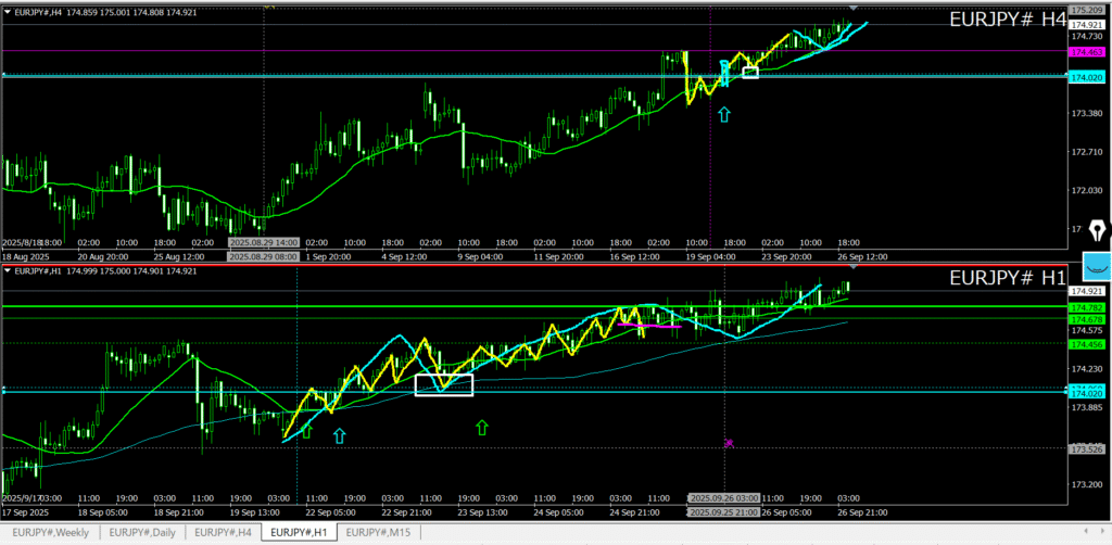 ポン円 トレンド転換シグナルや エントリーはわかるが、 ギザギザして手が出ない。 むずかしいチャート。